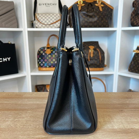 Prada Saffiano Small Galleria Double Zip Tote Black