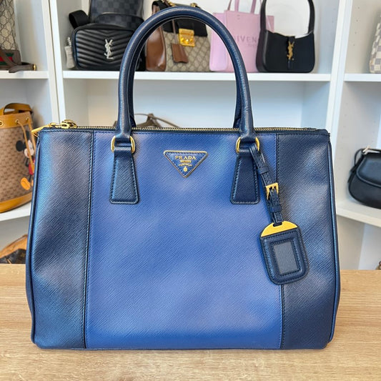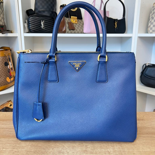 Prada Saffiano Medium Galleria Double Zip Tote Bluette Cobalto