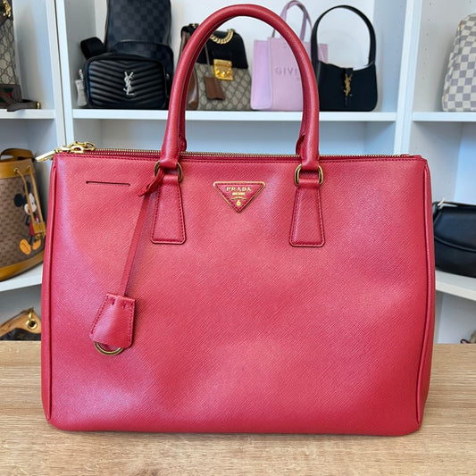 Prada Saffiano Medium Galleria Double Zip Tote Red