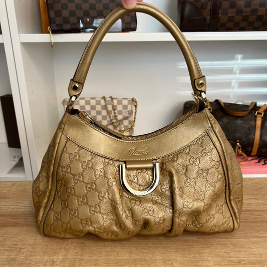 Pre-Owned Gucci Abbey Hobo Handbag Gold Leather Guccisma
