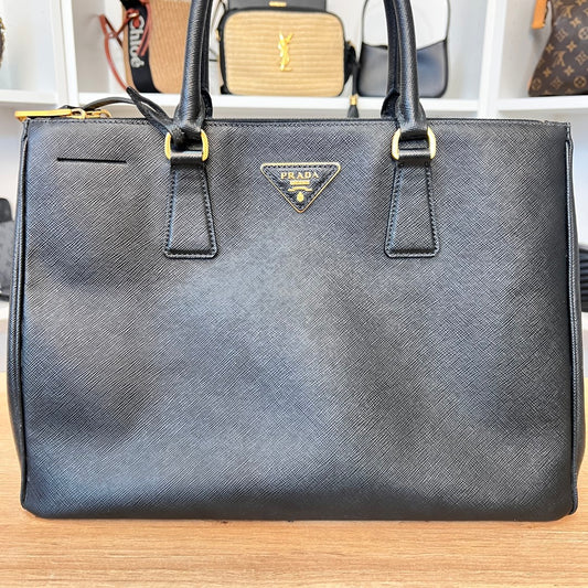 Prada Saffiano Medium Galleria Double Zip Tote Black