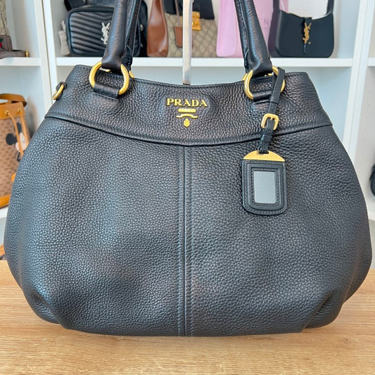 Prada Vitello Daino Tote Shoulder Bag Black