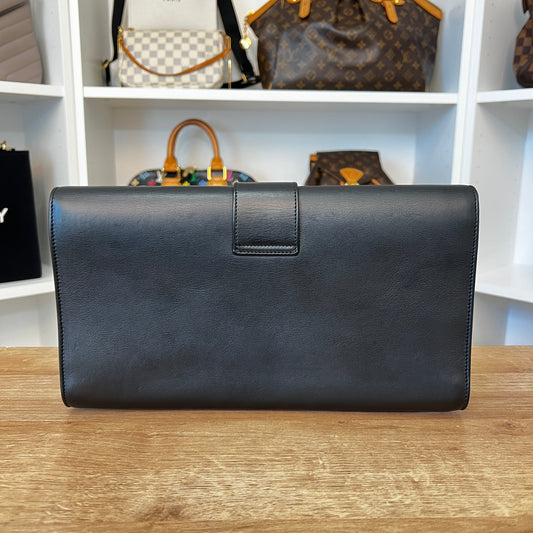 Saint Laurent Calfskin Classic Y Ligne Clutch Black/Gold with Crossbody Conversion