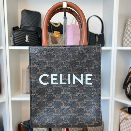 Celine Triomphe Canvas Calfskin Mini Vertical Cabas Tan