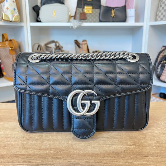 Calfskin Matelasse Aria Small GG Marmont Shoulder Bag Black