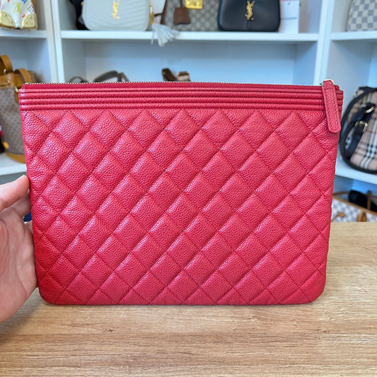 Chanel Caviar Quilted Medium Boy Clutch Dark Pink