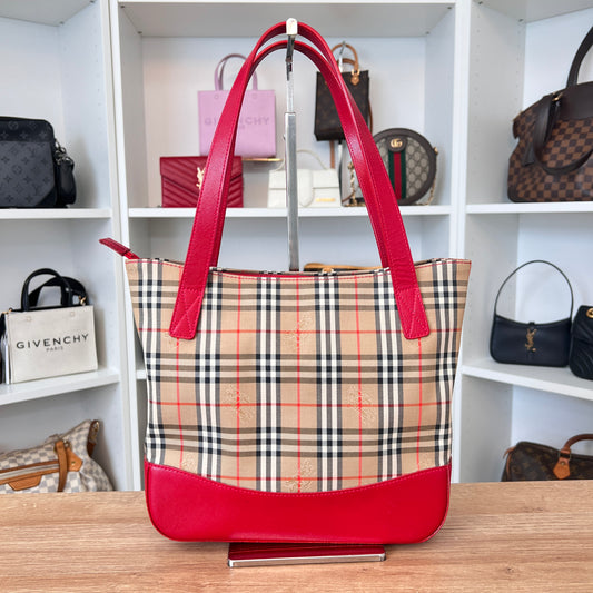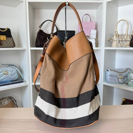Burberry Saddle Brown Check Canvas Ashby Tassel Bucket Bag