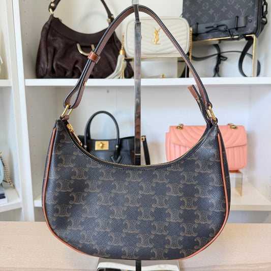 Celine Triomphe Canvas Calfskin Ava Shoulder Bag Tan