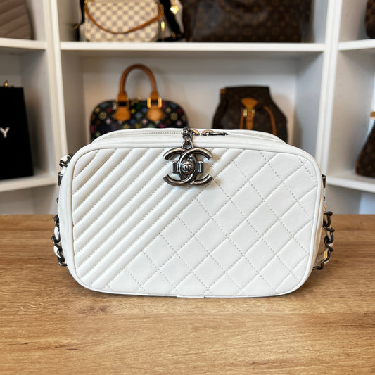 Chanel Red Quilted Lambskin Diagonal Camera Bag Medium