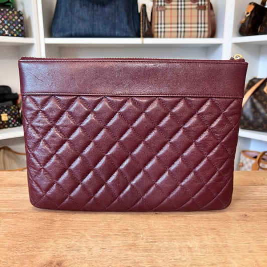 Chanel Sheepskin Quilted Medium Vintage Mademoiselle Clutch Burgundy