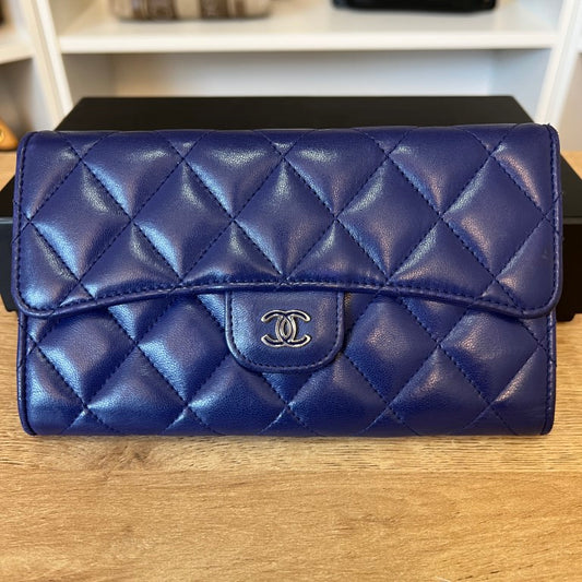 Chanel Caviar Timeless CC Wallet On Chain WOC Blue