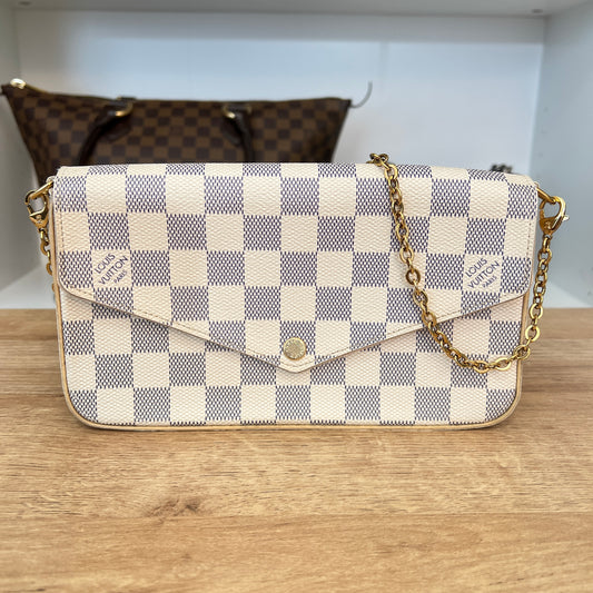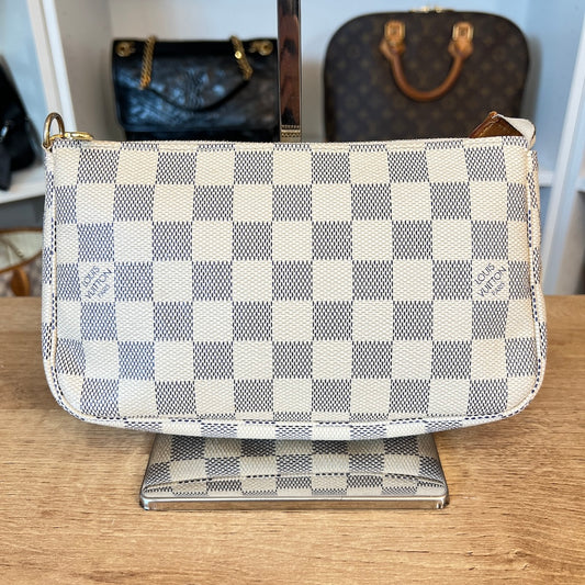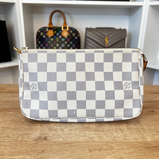 Louis Vuitton Damier Azur Neverfull Pochette MM Rose Ballerine