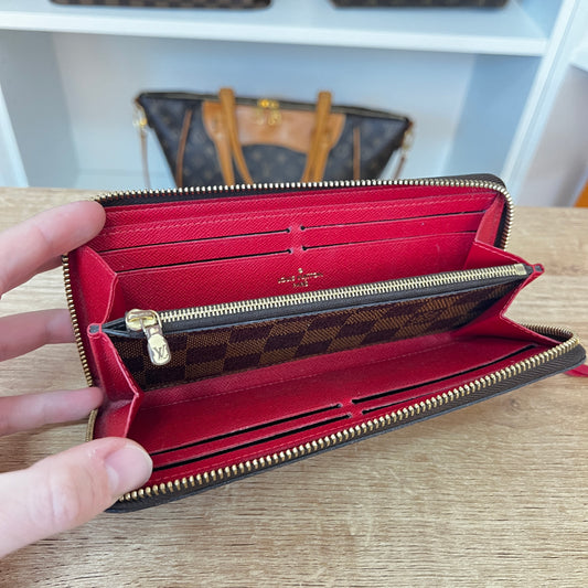 Louis Vuitton Damier Ebene Emilie Wallet Red