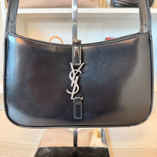 SAINT LAURENT YSL Le 5 a 7 Vertical Shoulder Bag Leather Mini Patent Black Silver Hardware