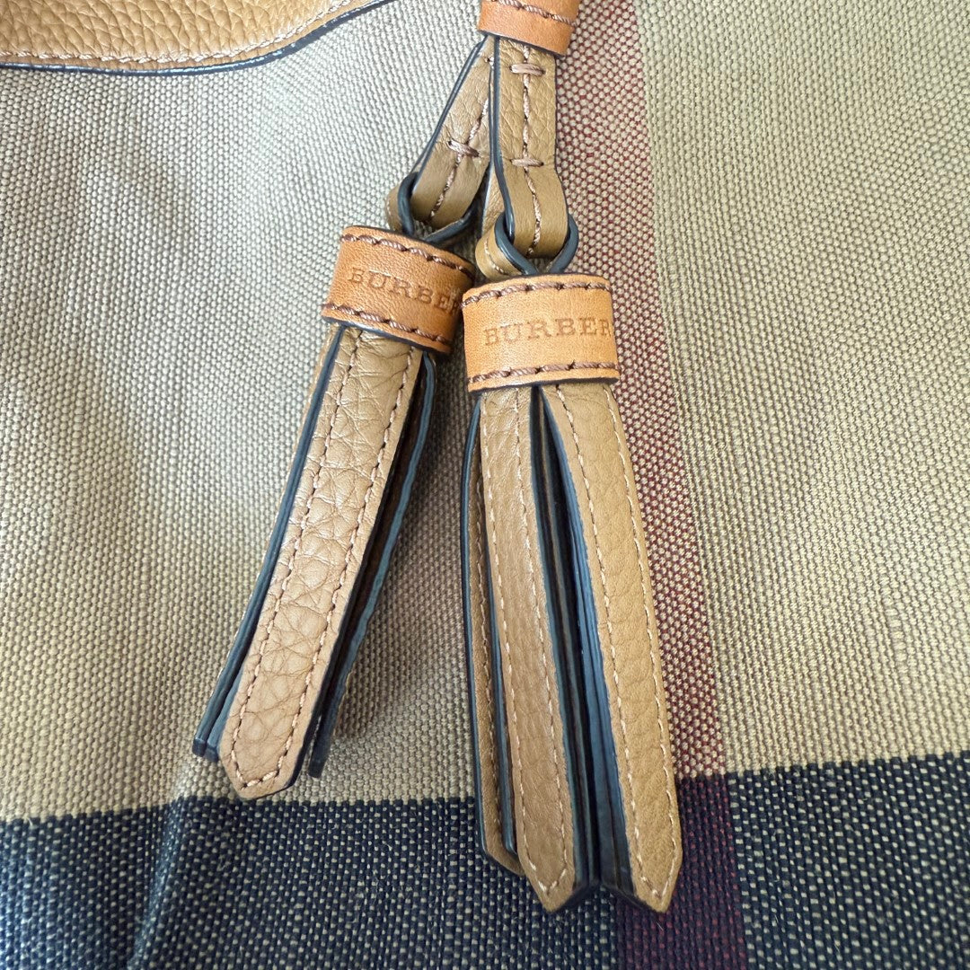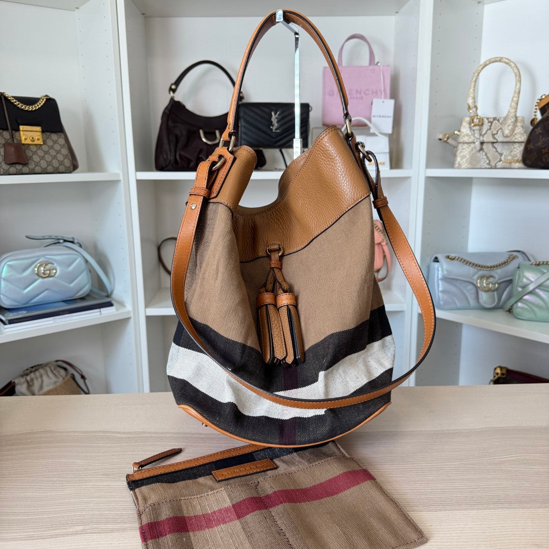Burberry Saddle Brown Check Canvas Ashby Tassel Bucket Bag