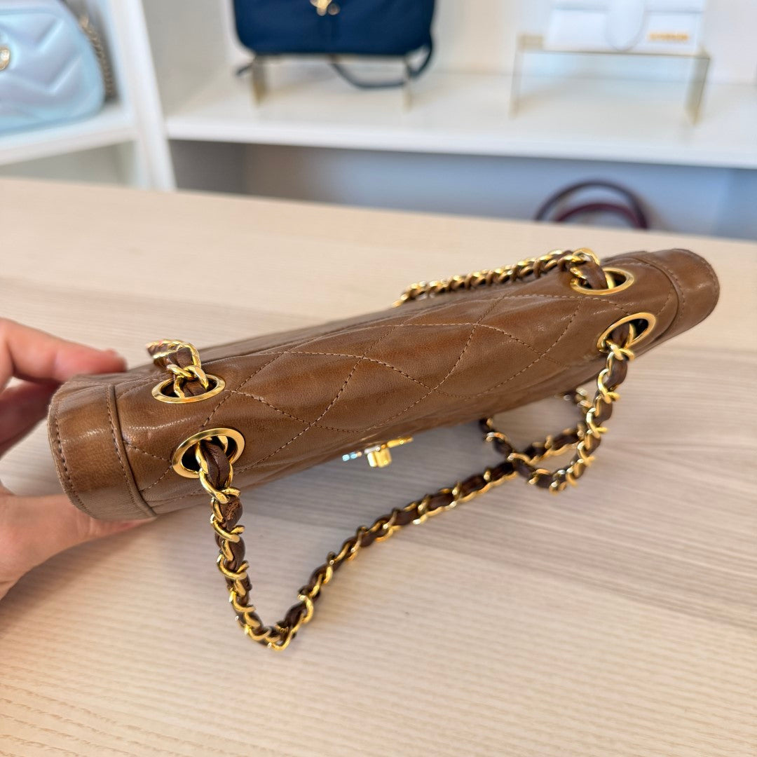 Chanel Lambskin Double Flap Vintage 1988 24K Gold Brown