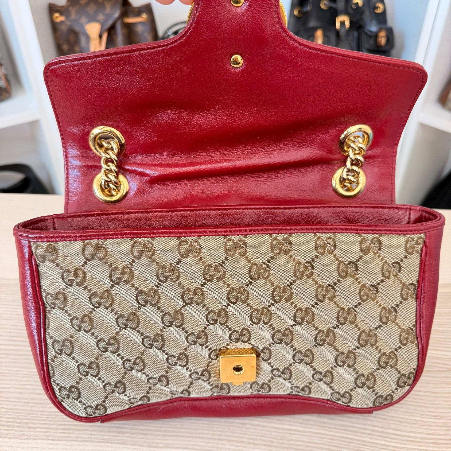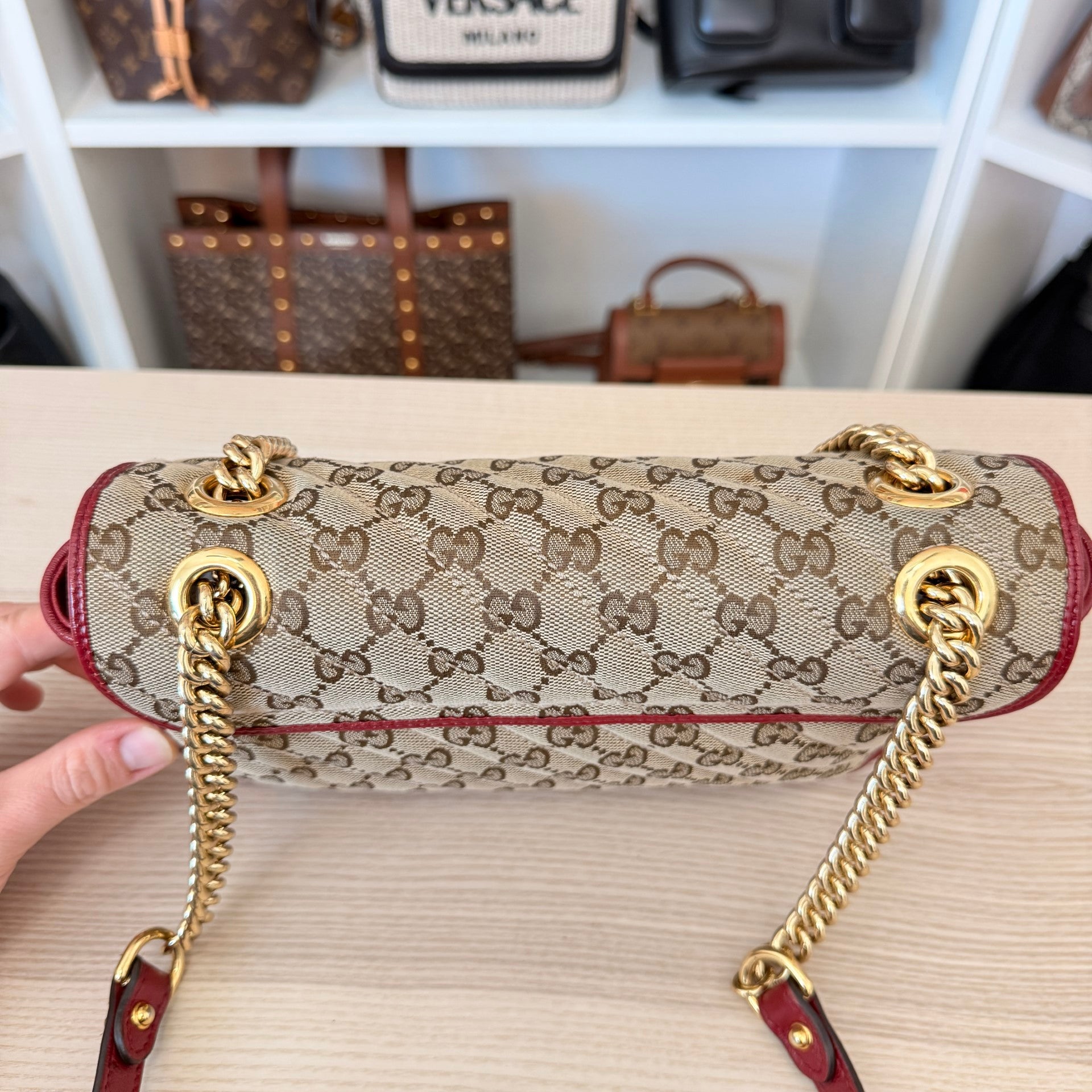 Gucci Monogram GG Azalea Matelasse Marmont Chain Shoulder Bag Beige Ebony