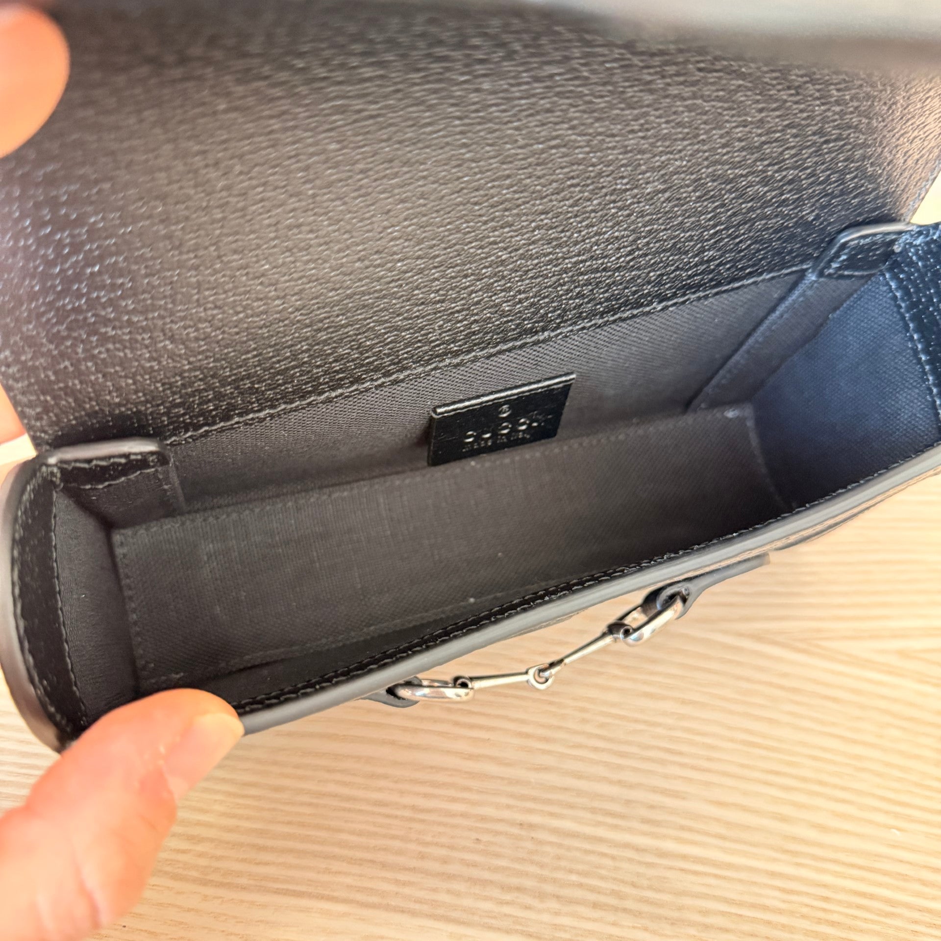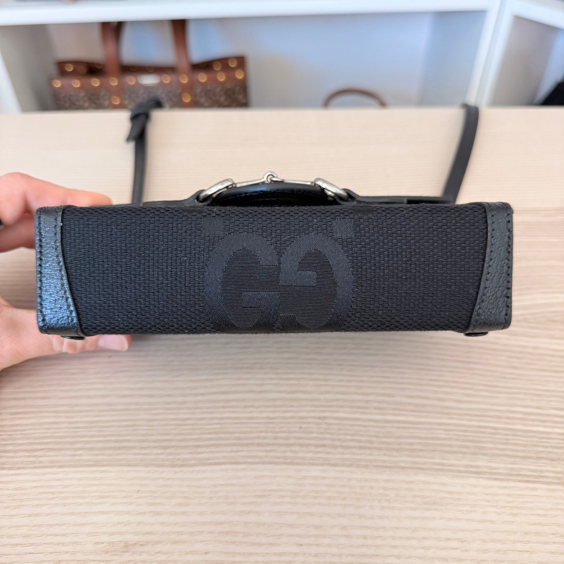 Gucci Monogram Jumbo GG Mini Horsebit 1955 Shoulder Bag Black