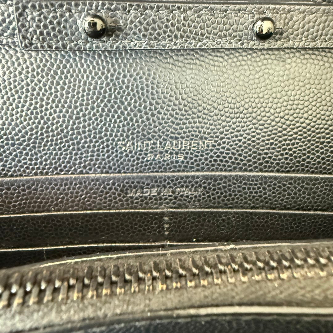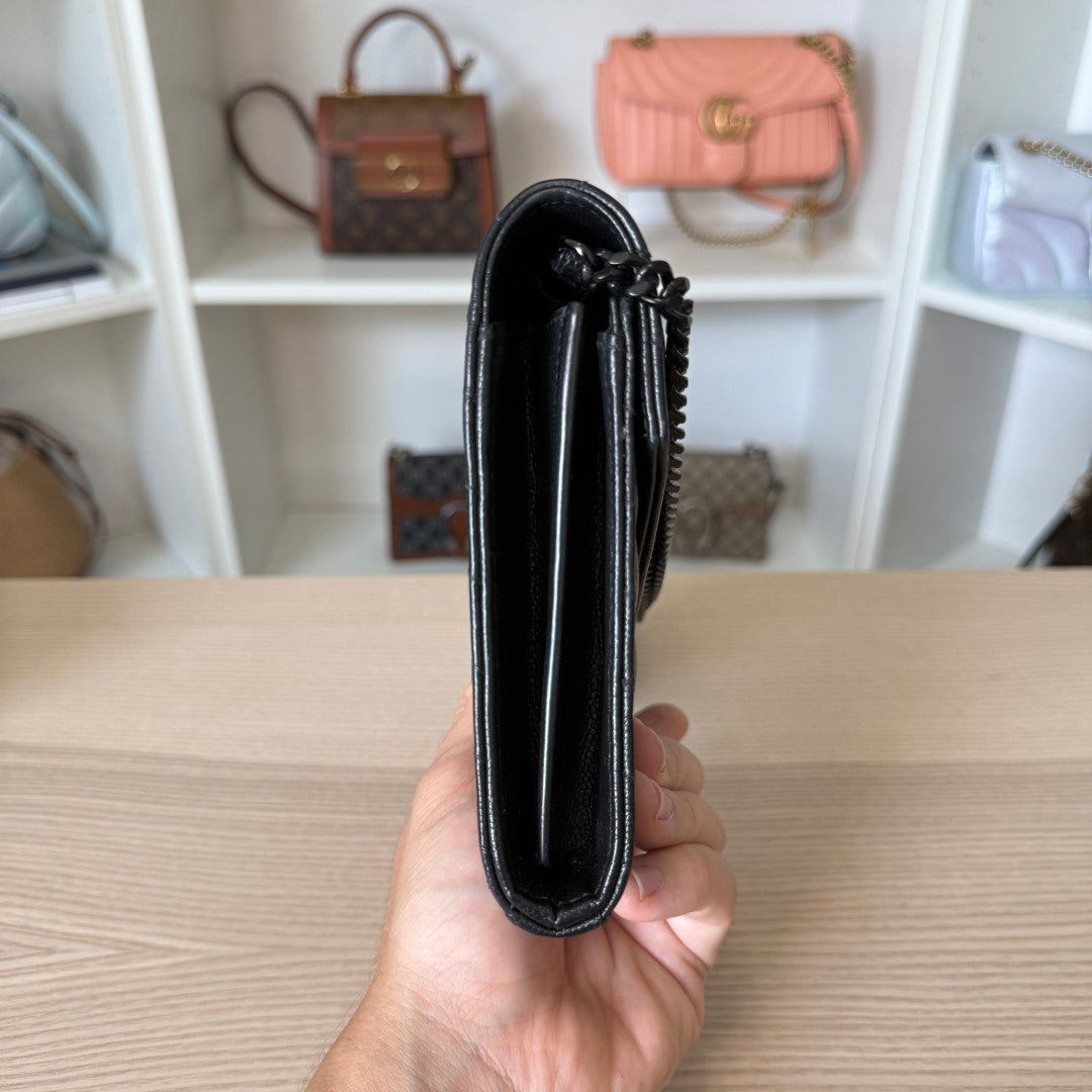 Saint Laurent YSL Monogram Large Wallet on Chain in Grained Leather Black Monochrome